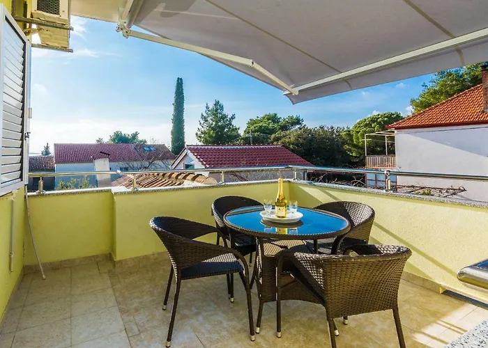 Apartman Mladenka Sukošan de 40 m² est situé à 10 minutes en voiture de la D-Marin Dalmacija et à moins de 2 km du centre de jetski. La résidence en bord de mer a une terrasse avec vue sur la mer.